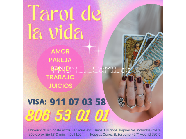 ¿Quieres saber cuando va a aparecer esa persona especial? Quizá esté en tu entorno y tú aún no lo sabes. Deja que el tarot te lo desvele, consultando a tarotistas certeras para saber como atraer a esa persona y como alejar lo que se interpone entre vosotros. Atención directa y exclusiva por teléfono con bonos muy económicos. Pruébanos con la oferta especial de 4 min gratis para nuevos clientes que te permitirá escuchar varias opiniones de videntes distintas. También podrás disfrutar del 2x1 mensual con el que poder multiplicar tu bono de minutos. Descubre uno de los gabinetes más importantes de España y con muchos años de experiencia.