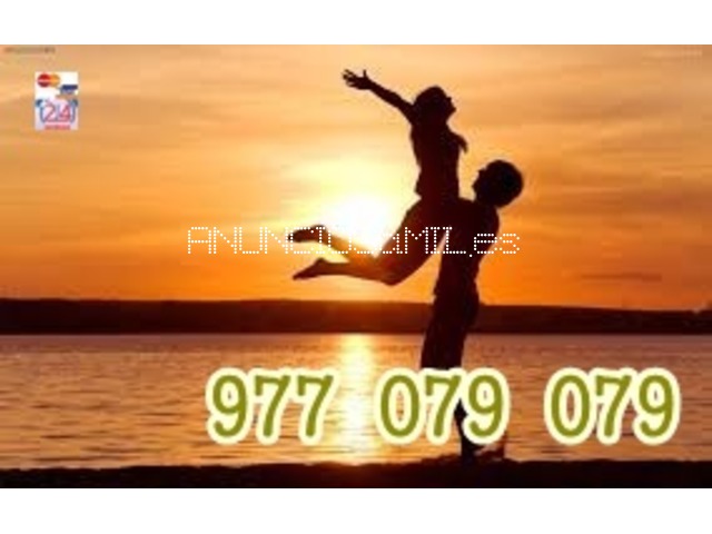 Soy Vidente y Medium. Mi Don y tus Seres de Luz te ayudarán a encontrar tu camino. No hay problema sin solución. Consulta por visa .INTRODUCE TU MISMA LOS DATOS,NO TE FIES,NI DES TUS DATOS A DESCONOCIDOS Consigue tu PACK-MINUTOS la locucion te pedirá los numeros de tu tarjeta,compra el lote que desees,puedes consumir los minutos de tu lote en varias llamadas,los minutos se guardan en una cuenta asociados a tu numero de teléfono 977 079 079, 15 minutos 4,5€, 30 minutos 8€, 24H.PAGO POR TARJETA,PAGO SEGURO Y DISCRETO mayores 18