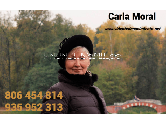 Soy Carla Moral y desde pequeña tengo el Don de poder adelantarme a los acontecimientos que van a suceder. Mediante las cartas, astrologÃa y la Kábala puedo darte fechas muy concretas de lo que está por venir. El futuro está escrito y yo puedo ayudarte a salir de dudas, eso sÃ, siempre con la VERDAD, aunque no sea lo que quieras oÃr. Puedes llamarme al 935 952 313 te atenderé personalmente, NO TENGO GABINETE.