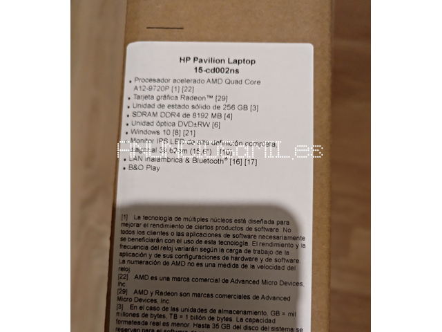 Portátil HP Pavilion. Modelo: 15-cd002ns. Procesador AMD A12, RAM de 8 GB DDR4. Disco Duro de 256 GB SSD. Tarjeta Gráfica Radeon 530 4 GB. Pantalla 15,6 pulgadas FULL HD REAL de 1920x1080.