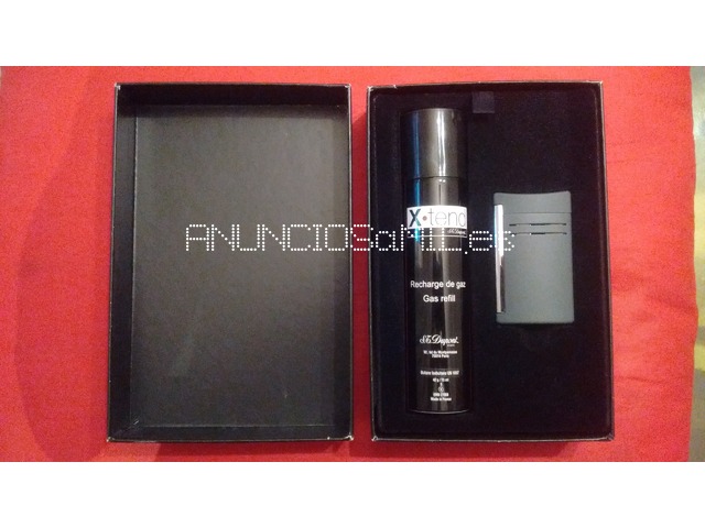 Encendedor Dupont muy poco usado, en su caja, con recargador de gas aproximadamente a la mitad.